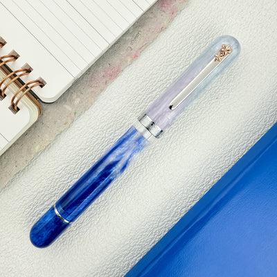 The Voyage: Cherry Blossom is a tribute to both nature’s fleeting beauty and enduring elegance. Its clip, meticulously handmade from brass, is adorned with delicate cherry blossom sculptures, a nod to the blossoms that herald the arrival of spring in Japan. The body of the Voyage: Cherry Blossom is sculpted from swirling blue and white resin, evoking the serene majesty of Mt. Fuji’s snow-capped peak against a clear sky. Designed to be as much a collector’s piece as a writing instrument, this pen harmonizes artistry with function, offering an experience as timeless as the landscapes that inspired it.
