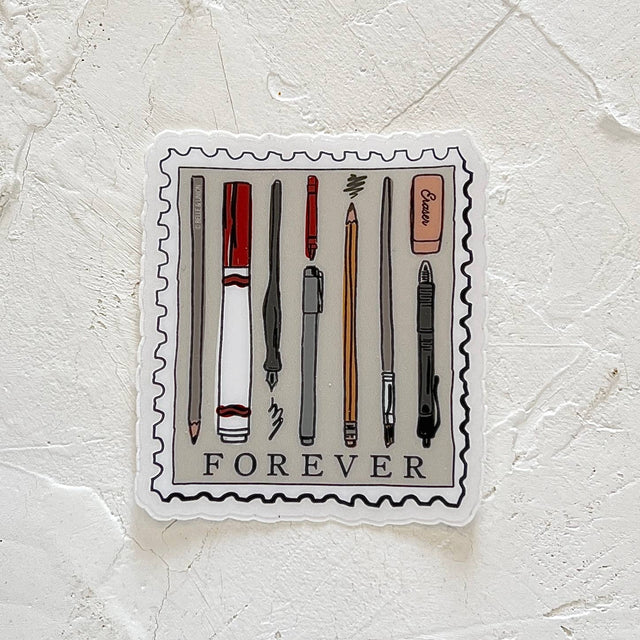 Pens & Pencils Forever Postage Stamp Sticker