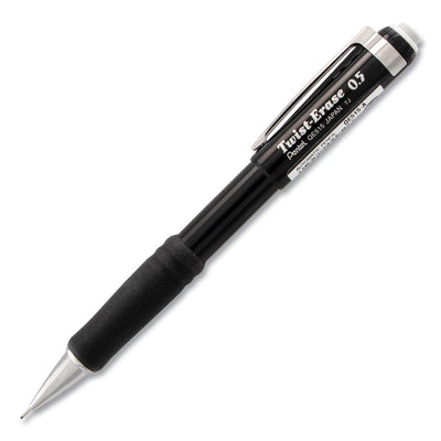 The Pentel® Twist-Erase III features a comfortable, extra-soft latex-free grip for less writing fatigue. The sturdy, well-balanced barrel makes this the most popular Twist-Erase® pencil around. A larger-than-ordinary and long-lasting twist-up eraser cleanly erases any mistakes – no smudges, no paper tears and no ghosts. Pre-loaded with Pentel® Super Hi-Polymer® HB lead that never needs sharpening, is super strong and produces a clear dark line. The protective tip design stabilizes lead to reduce breakage to keep you writing longer.