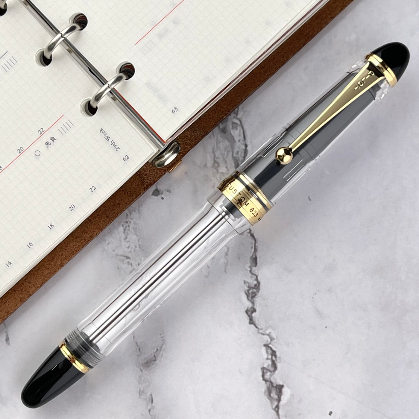 The transparency of the fine writing instrument allows you to gauge the quantity of ink within. The 823s use an internal vacuum filling mechanism where no cartridge or converter is needed.