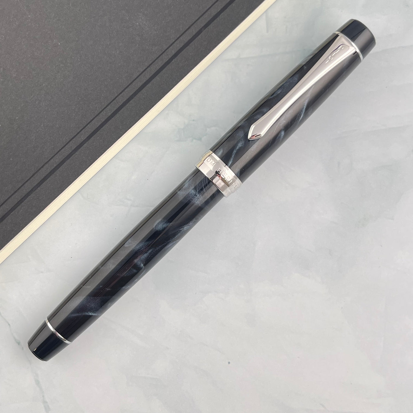 The stunning and vibrant marble-colored resin body of the Pilot Custom Heritage SE extends sophistication to your writing style. Every single pen is one-of-a-kind because no two-marbling pattern are the same. The Custom Heritage SE fountain pen is smooth writing with a finely crafted 14 karat gold, #5, rhodium plated nib.