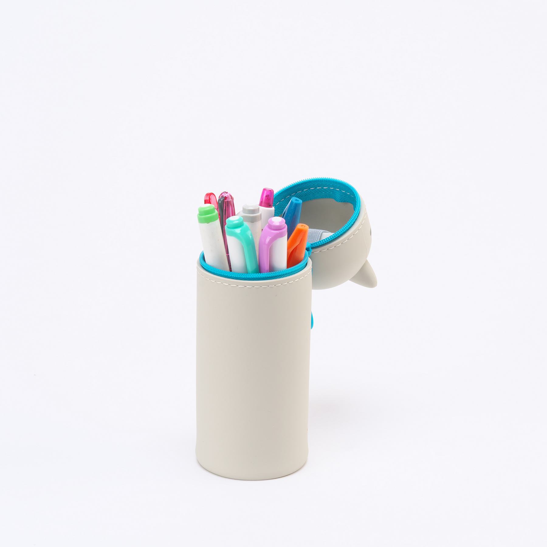 PuniLabo Stand Up Pen Cases are the perfect companion for any stationery lover! Each case can be zipped closed for easy transportation, and holds your favorite pens and pencils upright until you're ready to use them. Simply place your writing supplies in the body, your eraser in the elastic on the top, and zip closed. When you want to use the contents, open the case, press the bottom down on the desk, and watch the case transform into a cup that pushes your writing supplies upward to make them easy to see and use.