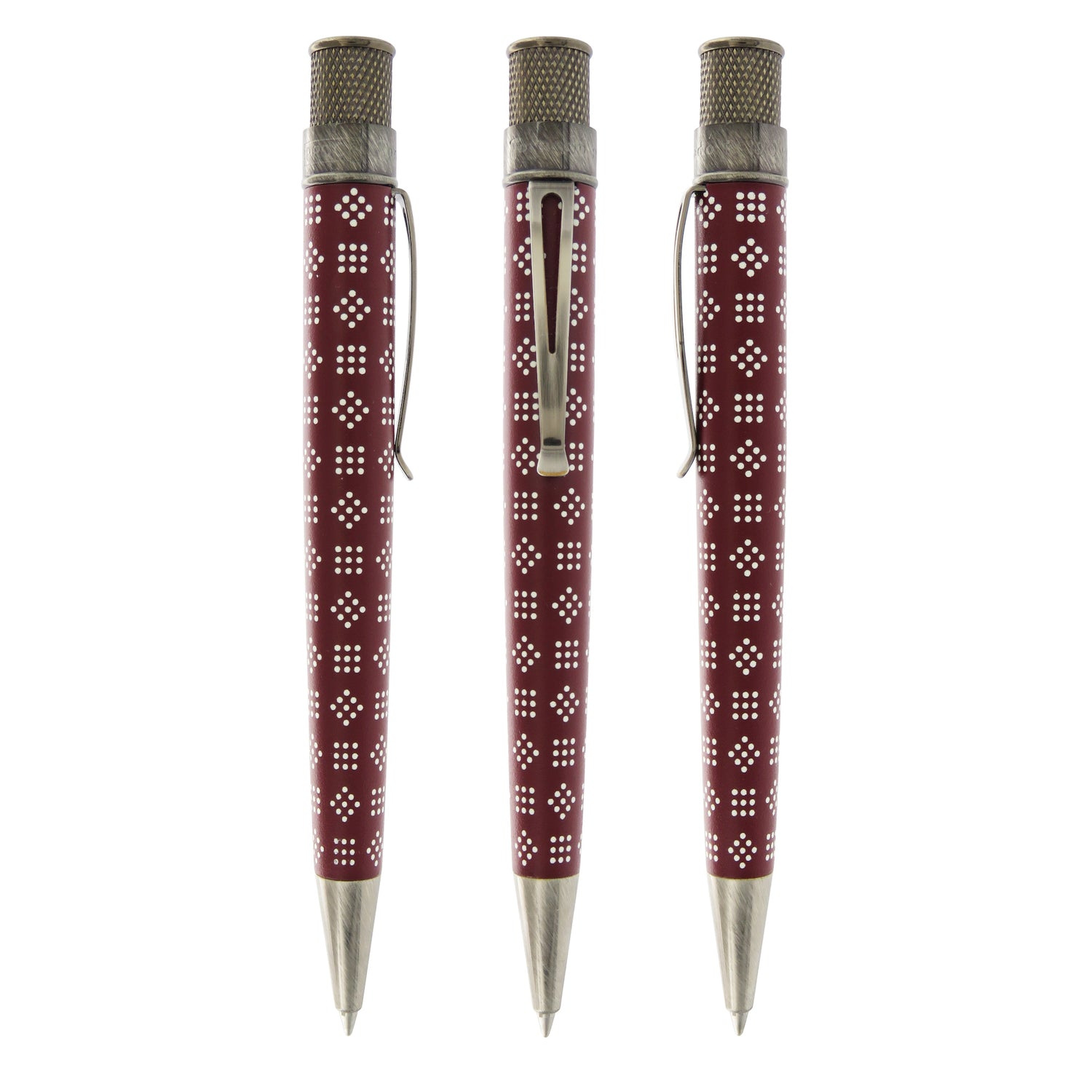 Harriet Tubman is one of America’s most iconic figures, inspiring generations. In the face of unrelenting danger, Harriet Tubman courageously risked her own life, traveling countless miles on the Underground Railroad to help other slaves find freedom and "never lost a passenger." This Tornado rollerball pays homage to Harriet Tubman. The design reproduces the pattern from a headscarf in one of her most well-known photos. The stainless barrel has a lightly textured base coat with pattern printed on top and is finished with antique silver trim and her portrait on the finial. Each pen is packaged in a commemorative tube. May all who write with this pen be moved by Tubman's daring, courage and generosity.