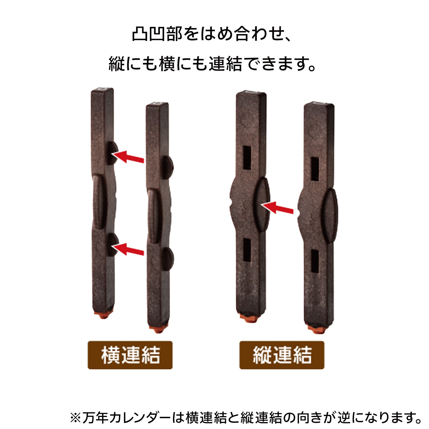 • The convex and concave parts can be fitted together to connect both vertically and horizontally