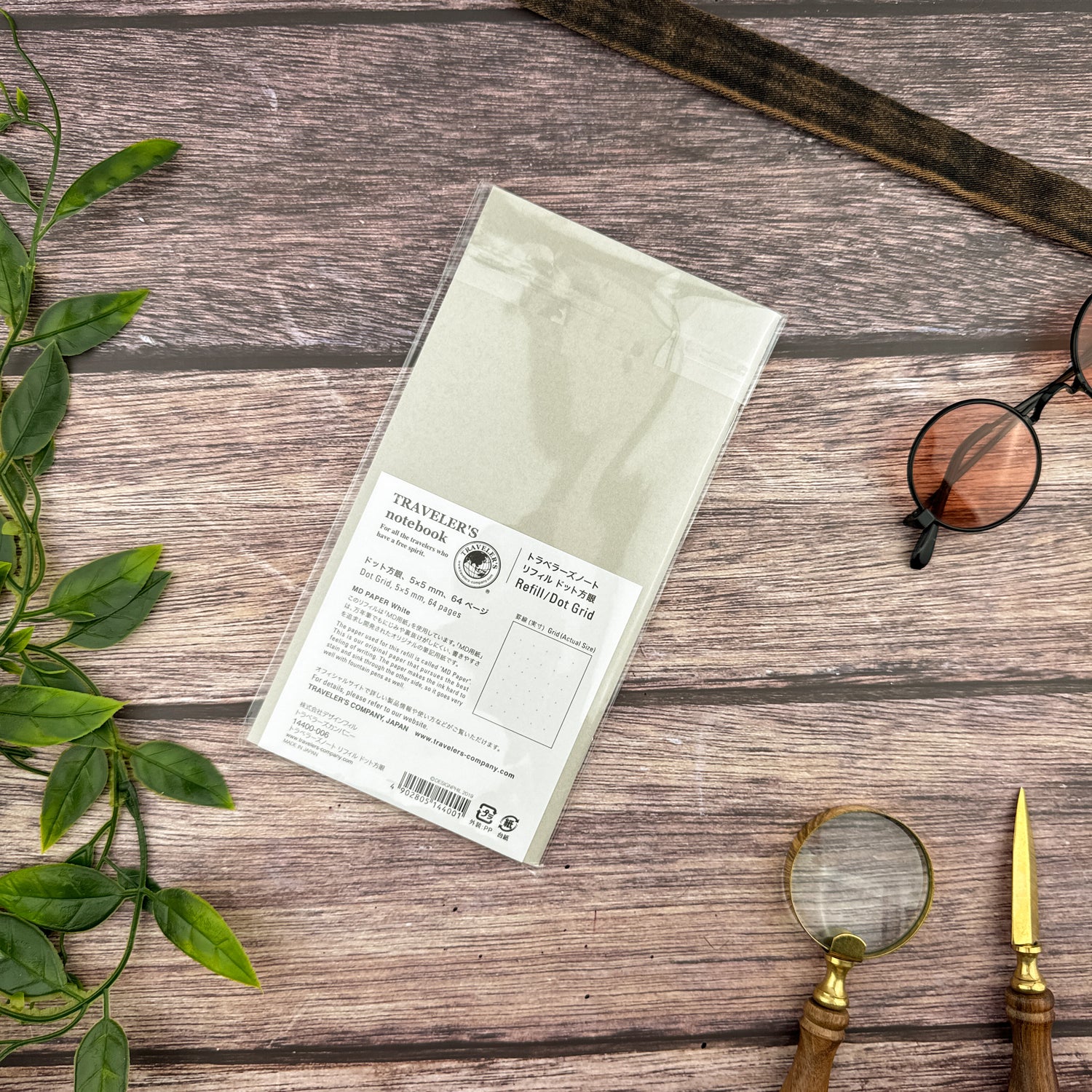 This is a TRAVELER’S notebook refill with small dots in 5mm intervals. These dots are excellent for writing graphs and boxes or as a guide in writing and illustrating that isn’t obtrusive or in the way. Try out the myriad of enjoyable ways to make use of the dots, from making comic book panels or a layout like a magazine, to using them to keep track of spacing like traditional Japanese writing paper. MD Paper is used for this notebook so the feeling when writing is simply great.