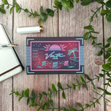 The Vinta Neon Collection is a fun capsule collection that focuses on technology, the future, and contemporary art including film. We were thinking of technology, in particular, computers and space/time travel. While the Vintage Collection looks back in time, the Neon Collection looks to the future and the possibilities that await us.