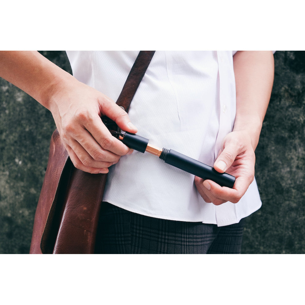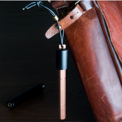 ystudio’s portable fountain pen creates a new way to bring your fountain pen with you. You can hang it on your bag and open it to start writing. The pen writes steady and smooth. The nib is from Germany Schmidt nib and it comes with Schmidt converter inside. It’s a true eye catcher and a great gift suggestion. This pen is made of solid copper and comes with one maple pen case (in black color) and one exquisite paper box package.